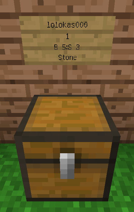 Na takýto obchod potrebujete truhlu, ceduľku, nejakú stenu (napr. stačia 2 bloky na sebe) a tovar, ktorý chceme nakupovať či predávať. V našom prípade to bude kameň (stone).